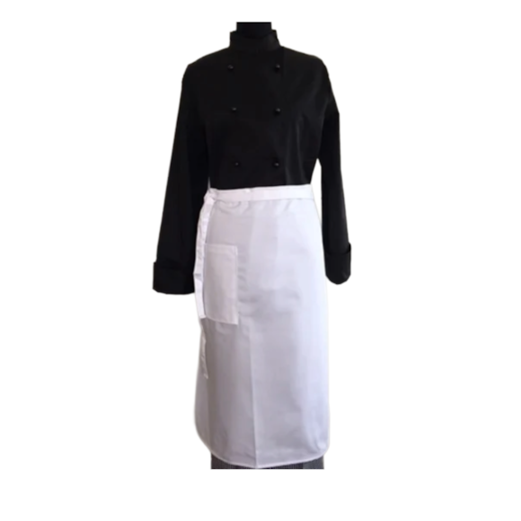 Ett snyggt midjeförkläde i vitt som passar alla olika typer av serveringar från Textilgruppen. Förklädet är utrustat med en ficka på framsidan så att du enkelt kan förvara mindre hjälpmedel såsom pennor och flask/vinöppnare. Dessutom har förklädet ett midjeband så att det passar alla olika kroppsformer. Förklädet är gjort i ett tåligt material som klarar vardagsbestyren i köksmiljön på ett fantastiskt sätt. Skydda dina kläder från fläckar och på bästa sätt med detta förkläde!