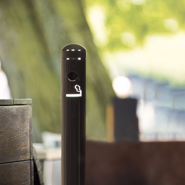 En askkopp på stolpe från Securit i serien Classic, utvecklad för användning i restauranger, hotell och offentliga miljöer. Den fristående modellen är idealisk för placering vid entréer, uteserveringar och rökområden där en stilren och funktionell lösning behövs. Askkoppen är tillverkad i rostfritt stål med svart blank finish och har en stabil bas som ger god stadga även i miljöer med hög genomströmning.