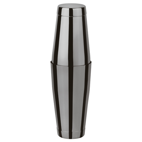Denna tvådelade shaker är gjord av rostfritt stål med en mörkgrå design. Ett obligatoriskt tillbehör för restauranger och barer som vill erbjuda goda, skakade drinkar med extra kyla, skum eller annan textur.