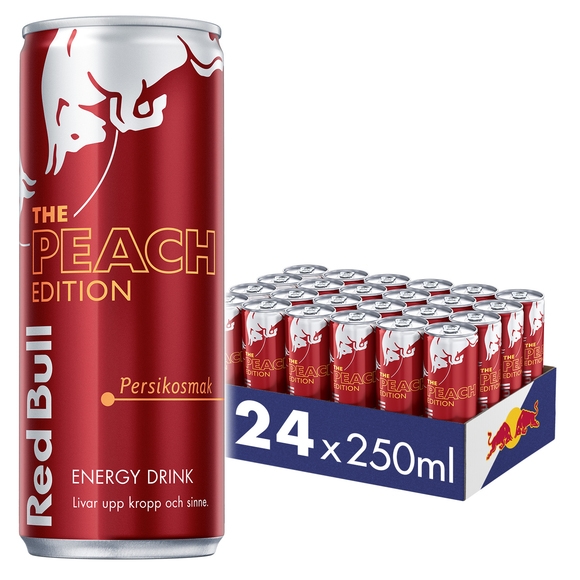 Ett flak red bull med en uppfriskande smak av persika. Den bubbliga drycken är smakrik, törstsläckande, och innehåller lika mycket koffein som i en kopp kaffe. Perfekt att servera till den som önskar ett alkoholfritt dryckesalternativ eller för att blanda en god grogg. Livar upp kropp och sinne!