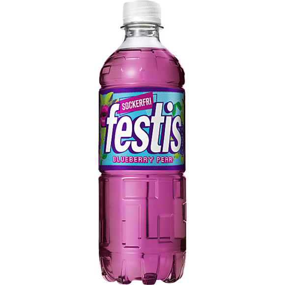 Festis goda och törstsläckande dryck med smak av blåbär och päron är inget du vill gå miste om. Den sockerfria drickan är perfekt att förtära under en varm sommardag när vätska behöver fyllas på. Den lila drycken främhävs i den genomskinliga PET-flaskan, vilket lockar alla kunder att köpa den.