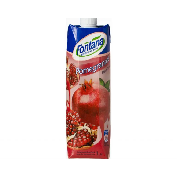 En juice i smak av granatäpple från Fontana. Fruktdrycken är framställd av koncentrat med en frisk och fruktig smak. En drickfärdig dryck som passar utmärkt till drinkar och cocktails.
