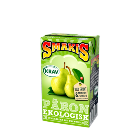 Smakis Päron är en supergod stilldrink utan kolsyra med en smak av sött päron. Drycken är utan färgämnen och konserveringsmedel och är helt drickfärdig med sugrör. Perfekt att ha i kylen på restaurangen när den yngre gästen blir törstig.