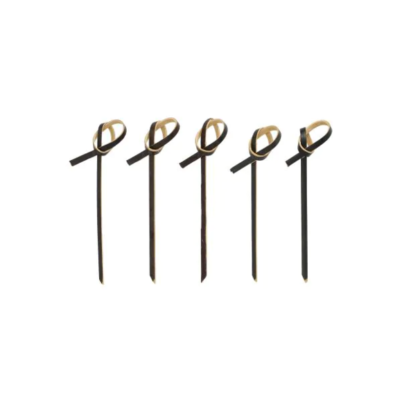 Cocktailpinnar i bambu med knuten topp. Utmärkt för både servering av aptitretare och garnering av drinkar samt cocktails. Dessutom är de ett miljövänligt alternativ till trä och plast. Perfekta för barer, restauranger, hotell och event.
