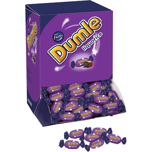 Njut av Fazers nya Dumle-kola med smak av lakrits. Den mindre godiskolan är blandad med lakrits och täckt med ett tunt lager mjölkocklad, och därefter försluten med deras klassiska papper som nu är i en lila färg. Sötsaken passar perfekt en lördagkväll framför en film i soffan.
