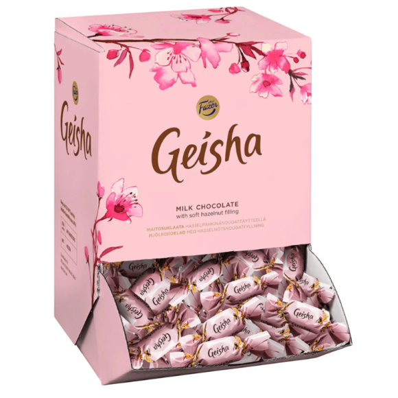 Fazers Geisha är en otroligt god choklad som är älskad över hela Sverige. Chokladen har ett härligt innehåll av krispig hasselnötsfyllning som döljer sig under det lena täcket av mjölkchoklad. Perfekt att servera på alla typer av events.
