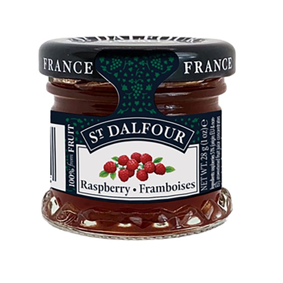 Marmeladen i roomservice-storlek från klassiska st. Dalfour med smak av hallon och granatäpple är även sötad från frukt och vingårdsmogna druvor, som hjälper till att naturligt konservera marmeladen. Marmeladen är fri från tillsatt socker och helt naturlig! Ett perfekt alternativ på hotellfrukosten eller till frukostbrödet på caféet.