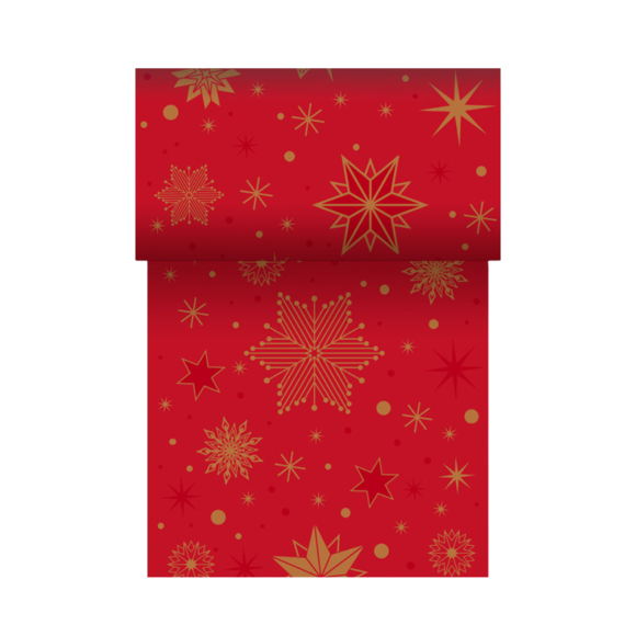Denna löpare i serien Stargazing Red från Duni ger en varm och festlig känsla till julbordet. Tillverkad i tåligt Dunicel-material som både skyddar bordet och bidrar till en elegant dukning. Ett utmärkt val för dig som vill skapa stämning utan att täcka hela bordet.