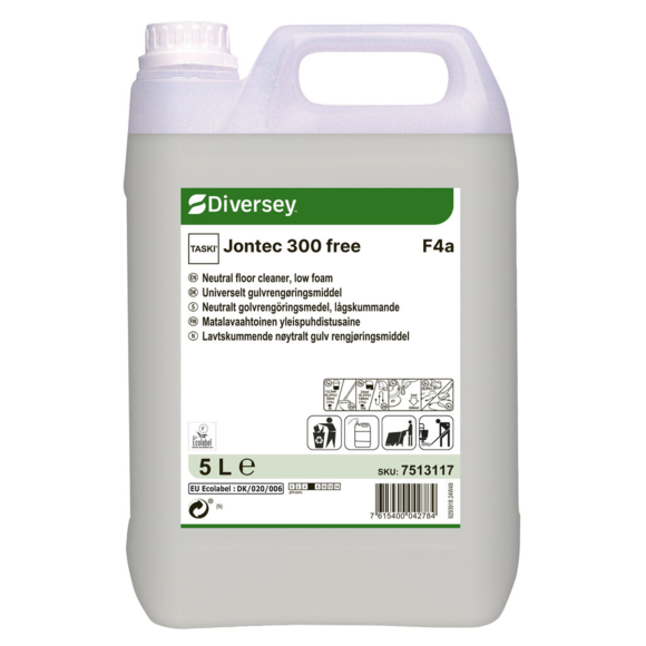 TASKI Jontec 300 Free är ett lågskummande golvrengöringsmedel som ger vattentåliga golv den omsorg de förtjänar. Medlet är särskilt utformat för kombiskurmaskiner men är även lämpat för manuell rengöring. Det är dessutom idealiskt för rengöring av golv med polishskikt. En multifunktionell produkt som förenklar golvrengöringen helt enkelt.