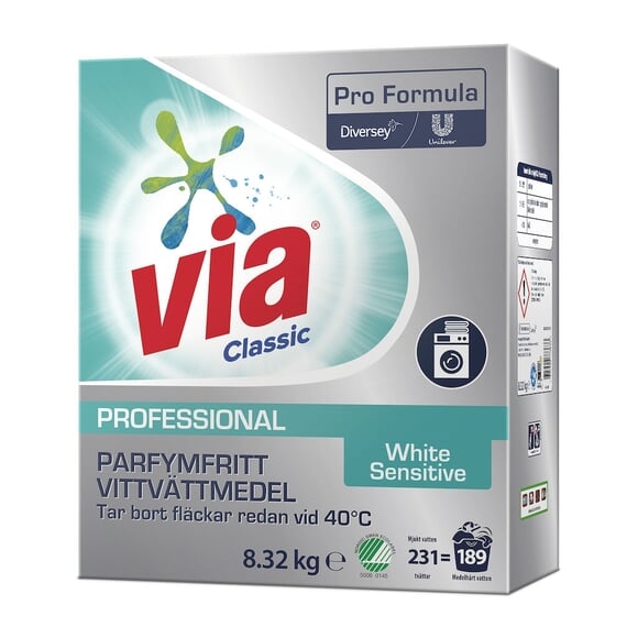 Skonsamt och effektivt pulvertvättmedel för vittvätt från Via. Tvättmedlet är utformat för att passa er med känslig hud eller allergi. Det är effektivt redan vid lägre temperaturer och det bevarar textilierna vita längre. Ett miljövänligt val för rena vita textilier!