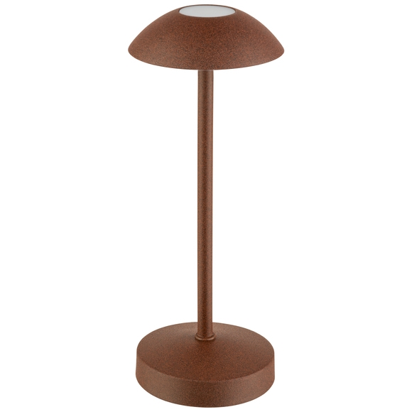 En rostfärgad, modern bordslampa från APS serie Alva. Lampan är portabel, vilket gör att den enkelt kan flyttas och placeras på valfri yta. Perfekt för att skapa stämningsfull belysning på restauranger, hotell och caféer.
