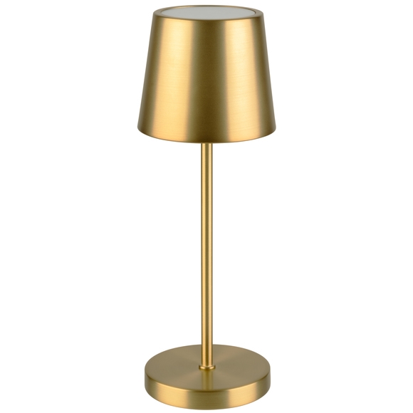 En guldig, modern lampa i mindre storlek från APS serie Merle. Den portabla konstruktionen gör den lätt att flytta och placera på valfri yta, vare sig det är på bordet, i bokhyllan eller på bardisken. Perfekt för att skapa stämningsfull belysning på restauranger, hotell och caféer.