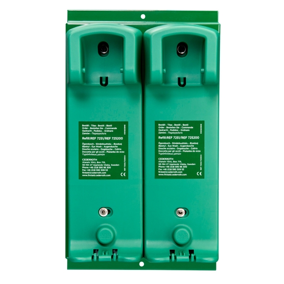 Dispenser för ögondusch från Cederroth, designad för enkel och snabb åtkomst vid olyckor. Ögonduschflaskorna, som säljs separat, är enkla att använda tillsammans med dispensern och möjliggör en effektiv och grundlig ögonsköljning. Ett måste på alla arbetsplatser!