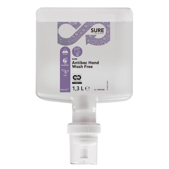 SURE Antibac Hand Wash Free från Diversey är en växtbaserad, mild handtvål med antibakteriell effekt som effektivt rengör och vårdar huden. Produkten hämmar tillväxten av mikroorganismer och bakterier, samtidigt som den parfymfria formulan återfuktar huden. Perfekt för frekvent handtvätt inom restaurang, storkök, hotell och andra miljöer där god hygien är en prioritet.