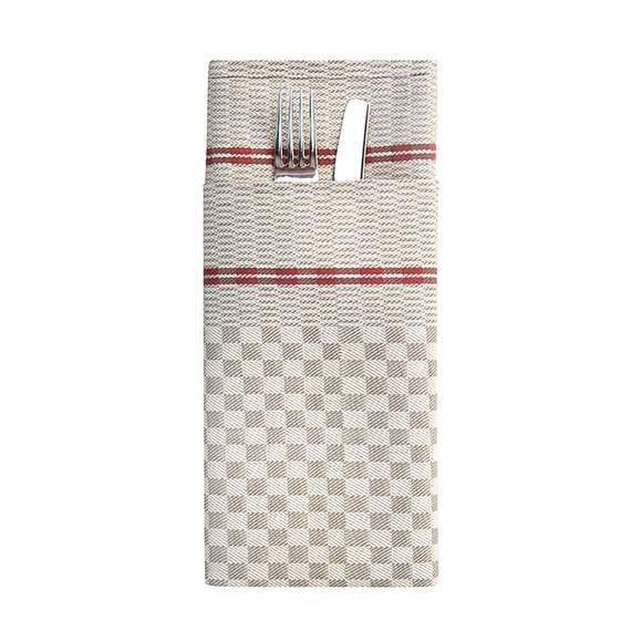 Servetten Alice från Fritz Magnus har en rutig design med röda detaljer. Den är framtagen av 100% bomull för en mjuk och rustik linnekänsla, samtidigt som materialet gör den perfekt för servettvikningar. Passar utmärkt för allt från eleganta dukningar till enklare kaffeserveringar.