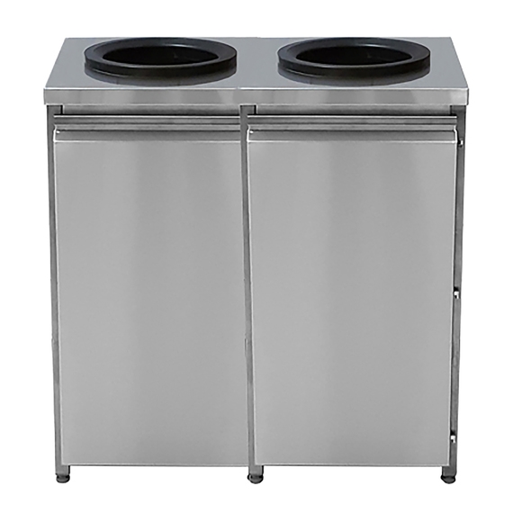 En stilren avfallsenhet dubbel 785x520x900mm från Diskomat. Denna snygga soptunna i rostfritt stål passar utmärkt i storkök och serveringsverksamheter. De dubbla soptunnorna håller verksamheten ren från skräp och orenheter och passar mycket bra för källsortering av diverse material.