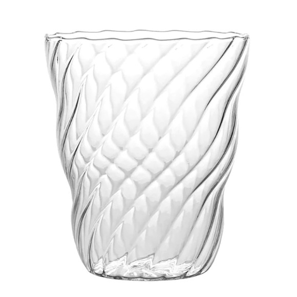 Ta serveringen till nästa nivå med detta unika tumblerglas från Italesses serie Twist. Glaset är handgjort och munblåst i borosilikatglas och präglas av ett sofistikerat spiral- och vågmönster som berikar glaset med en unik touch. Perfekt vid servering av vatten och andra drycker i restauranger, caféer och hotellverksamheter. Glaset livar upp alla dukningar och serveringar – detta vill du inte vara utan!