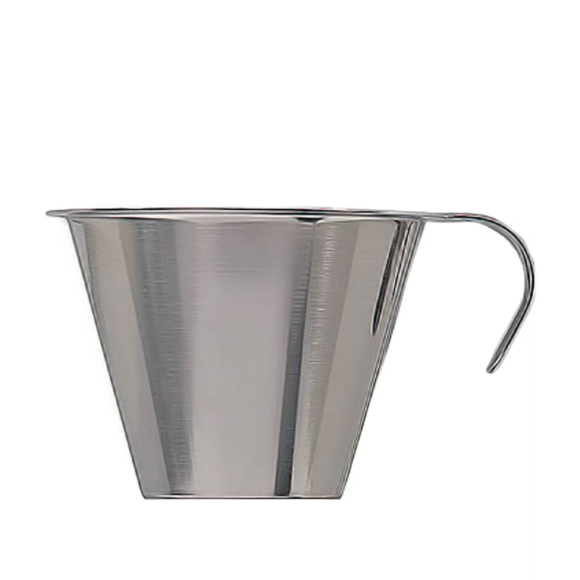Ett köksmått i rostfritt stål med praktiskt öppet handtag som gör det enkelt att greppa och förvara. Den smarta utformningen gör att flera mått kan staplas i varandra för smidig förvaring i köket. Måttet är livsmedelsgodkänt och tål både höga och låga temperaturer, vilket gör det användbart i många olika moment i matlagning och bakning.