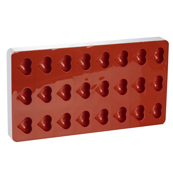 Den terrakottafärgade silikonformen från Silikomart med hjärt-formade hål är tillverkad av hög kvalitet. Geléformen har en hög kvalitet genomgående, och tål extrema temperaturer såväl som mikrovågsugn och maskindisk. Ett smart och tåligt alternativ till caféet, fiket, eller konditoriet som vill piffa upp bakverken lite extra!