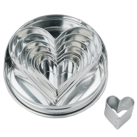 Praktiska utstickarsatser i form av hjärtan från Bakers. Utstickarna används för att skapa både former och dekorationer i olika storlekar på bakverk. De hjärtformade utstickarna kommer i 8 olika storlekar och passar utmärkt in i både restaurangen och caféet.