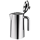 Den eleganta och tidlösa kaffekannan Compo från WMF. Kannan är blänkande och väldigt stilren. Den är cylinderformad med ett handtag, pip och ett lock som kan reglera hur mycket av innehållet som ska hällas ut. Kannan är dubbelväggad vilket innebär att innehållet håller sin temperatur längre, det gäller både kalla och varma drycker.