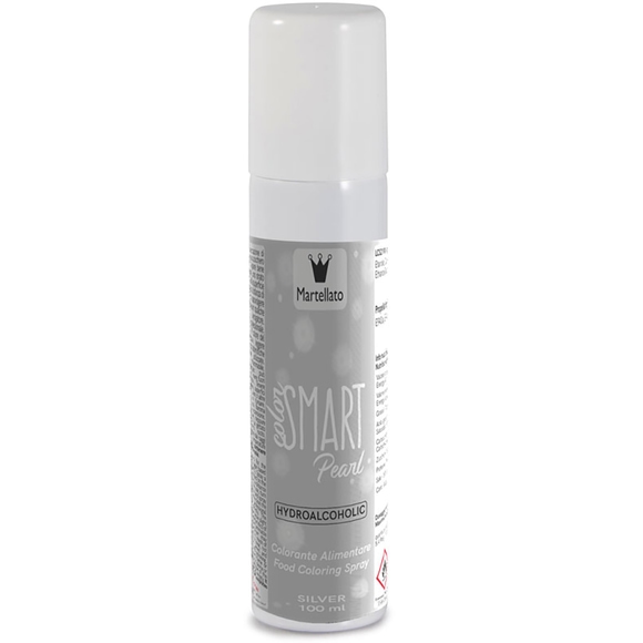 Silverspray för livsmedelsbruk från Martellato. Sprayen är enkel att använda – skaka burken, spraya ett tunt lager från ca 20 cm avstånd och låt torka. Perfekt för att dekorera tårtor, marsipan, mousse och andra desserter och bakverk.