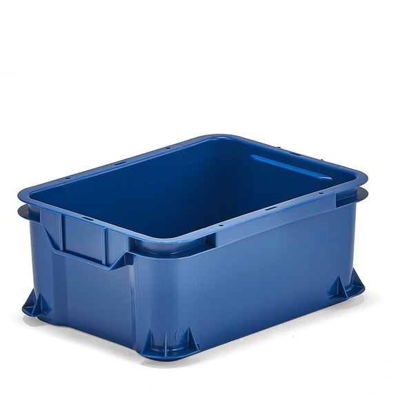 Denna transportback i blå färg från Pryce rymmer 15 liter och är tillverkad i etenplast HD som tål extrema temperaturer. Den är motståndskraftig mot olika lösningsmedel, syror och andra typer av oljor. Den är modulanpassad till EUR-pall och kan staplas. Ett bra alternativ för att packa och transportera olika varor.