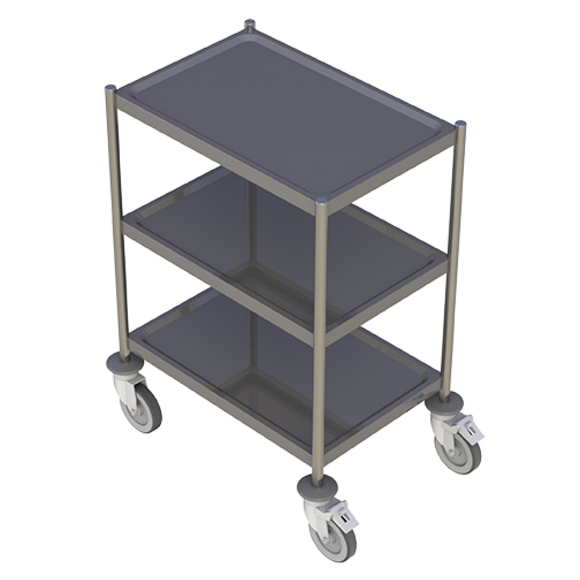 En mycket praktisk och tålig bordsvagn från Molins. Perfekt för servering och transport av såväl livsmedel som andra varor och produkter. Vagnen har två hyllor med en låg kant som hindrar lasten från att glida av. De svängbara hjulen gör vagnen lätthanterlig och enkel att manövrera.