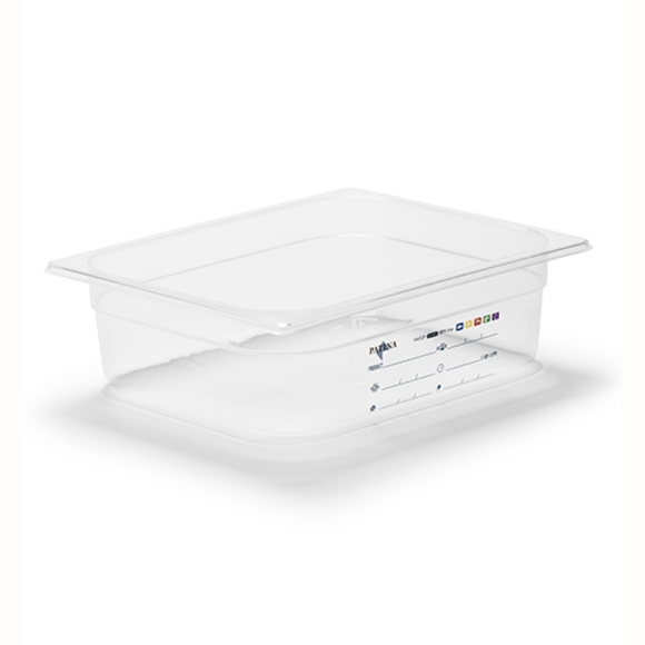 Transparent kantin tillverkad i bisfenolfri PP-plast utan handtag från svenska varumärket Patina. Väl lämpad för användning i professionella restaurang- och cateringkök. Kantinen är i GN 1/2 och med en kant på 100mm. Patina har sedan 2002 försett restaurangbranschen med kvalitativa redskap och tillbehör. Till en början tillverkade och sålde Patina kantiner och kokkärl, men kom sedermera att leverera ett brett, och komplett sortiment av kvalitetsprodukter till restaurang & storköksmarknaden. Mått: H100mm B265mm L325mm Volym: 6,1L