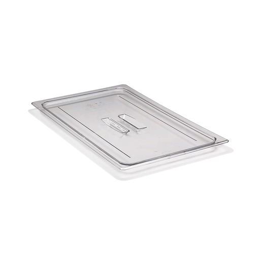 Ett kantinlock i plast till en glasskantin. Det genomskinliga locket är nödvändigt att ha på restauranger och caféer som använder glasskantiner. Locket håller innehålet fritt från bakterier och smuts som kan tränga sig in.