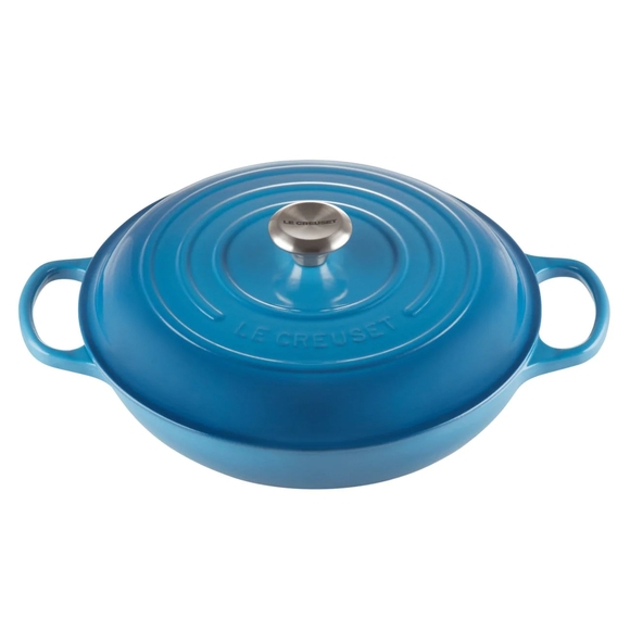 Buffégryta från Le Creuset som garanterat fångar ögat. Grytan är tillverkad i högkvalitativt gjutjärn vilket gör att den fördelar värmen på bästa sätt. Den emaljerade insidan i kombination med den vackra färgen gör grytan till en självklarhet i köket.