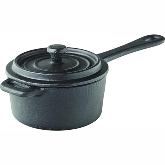 Gjutjärnsgryta med handtag Ø10cm 25cl från Utopia är en mindre gryta tillverkad i svart gjutjärn och kommer med ett långt handtag samt ett lock med knopp som underlättar hantering och servering. Grytan passar speciellt bra för bordsservering av olika varma såser som gräddsås, pepparsås och rödvinssås. Gjutjärnsgryta med handtag passar utmärkt för restauranger, pubar och bistros.