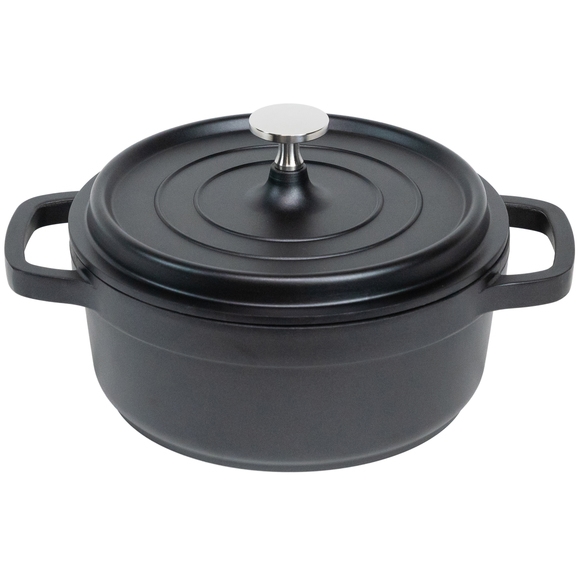 Denna svarta gryta av gjuten aluminium från AluChef erbjuder utseendet av ett gjutjärn men med en betydligt lägre vikt. Grytan är designad för att möjliggöra hälsosam matlagning och tål höga temperaturer, vilket gör den idealisk för olika matlagningstekniker. Ett utmärkt val för storkök och restauranger.