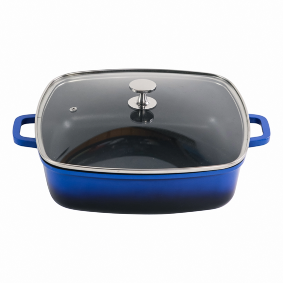 Gryta aluminium non stick låg 28x28cm 4,93L glaslock blå AluChef