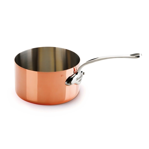 En otroligt vacker kastrull som är handtillverkad, från det franska varumärket Mauviel i serien M´150S. Oavsett om du i denna tillagar en härlig sås eller känsliga råvaror hålls hög kvalitet, mycket god värmefördelning och kontrollerad matlagning. Perfekt på restauranger för att säkerställa en kastrull på hög nivå. Designen är stilren och fångar ögat på ett tilltalande vis. Denna är 1,5mm tjock och tillverkas av både koppar och rostfritt stål, en kombination som gör succé.