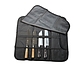 En stilren och praktisk knivrulle från Surudoi. Denna snygga knivrulle är tillverkad i svart läder och rymmer sex knivar. En knivrulle förvarar knivarna på ett sätt som låter de behålla sin kvalitet och skärpa. Knivrullen skyddar både dig och kniven från olyckor och är därför en mycket praktisk produkt till både kök och bar verksamheter.