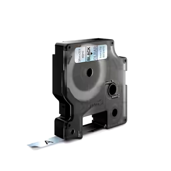 Använd Dymo D1 Tape när du vill göra snygga skräddarsydda etiketter med svart text på transparent bakgrund. Märk redskap och saker enkelt och smidigt, etiketterna fäster på både plast, papper, metall, trä och glas. Dess imponerande egenskaper gör dem även vattentåliga, UV-resistenta och tåliga för temperaturer mellan -18 och 90 °C. Denna otroliga Dymo D1 är ett måste för dig som värderar ordning och reda. Missa inte chansen att bli redo för märkning i världsklass!