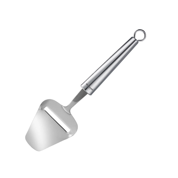 En elegant och vass osthyvel från Westmarks Glory-serie, tillverkad i rostfritt stål. Hyveln skär jämna skivor av både hårda och mjuka ostar, och tjockleken kan enkelt justeras genom trycket. Den stilrena designen med det karakteristiska handtaget ger ett professionellt uttryck både i köket och vid servering.