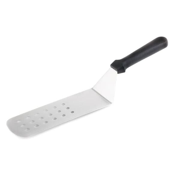 En perforerad stekspade i rostfritt stål med handtag i polypropen från APS. Praktisk, snygg och hållbar.