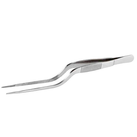 En liten vinklad pincett framtagen för plock och uppläggning från varumärket Paderno. Perfekt för mindre mat som kräver viss precision vid uppläggning. Pincetten är gjord i rostfritt stål och är 20 cm lång.