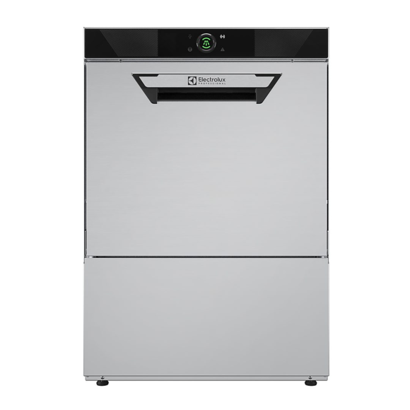 En underbänkdiskmaskin från Electrolux i serien NeoBlue Large (ETUCLG3), utvecklad för effektiv diskhantering i restauranger, caféer och barer. Maskinen är anpassad för 50×50cm diskkorgar och kombinerar hög prestanda med kompakt format. Den kraftfulla diskpumpen och den stora disktanken ger effektiv rengöring, medan den inbyggda genomströmmaren säkerställer rätt temperatur och tryck vid slutsköljning. Den robusta konstruktionen i rostfritt stål tillsammans med elektronisk styrning och touchpanel gör maskinen både hållbar och lätt att använda. Utrustad med Wi-Fi och Bluetooth för smidig uppkoppling och övervakning.