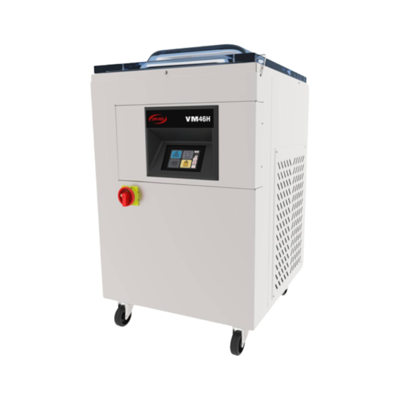 Vacmaskin Orved VM46H är en golvmodell med hög kapacitet för professionella kök. Maskinen har dubbla förslutningssvetsar och en kraftfull Busch-pump på 25 m³/h som ger upp till 99,8 % vakuum. Den styrs enkelt via en 5” TFT-pekskärm i härdat glas och erbjuder både förinställda och anpassningsbara program för förvaring och sous-vide. Utrustad med Wi-Fi, automatisk locköppning och pumpavfuktningscykel är detta en driftsäker lösning för restauranger och storkök.