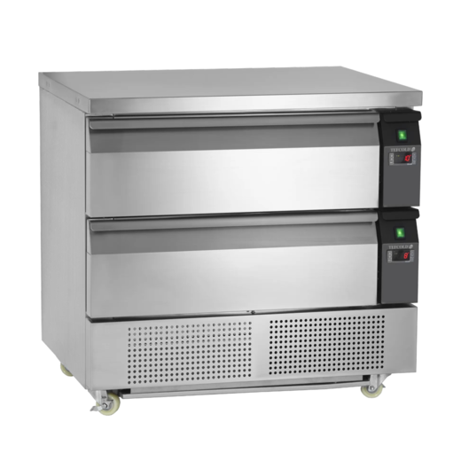 Kallskänkskylbänk KLE-2012 från Coolpart är en kylbänk i rostfritt stål som är särskilt framtagen för förvaring och beredning av diverse livsmedel. Skåpet är utrustat med 12 st draglådor och en kyld ränna för 11 st GN 1/6 kantiner.