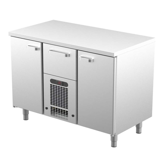 En praktiskt och funktionell kylbänk som är utrustad med draglådor, som tillval kan man istället välja dörrar.