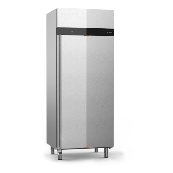 Ett nedkylningsskåp BRIS 850 från Haglund, utvecklat för professionella restauranger, storkök och livsmedelsproduktion. Skåpet används för snabb och säker nedkylning av varm mat för att uppfylla krav på livsmedelssäkerhet och kvalitet. Skåpet är tillverkat helt i rostfritt stål och är utrustat med inbyggt aggregat samt energieffektiva fläktar för effektiv kylning. Den robusta konstruktionen gör det väl lämpat för intensiv användning i professionella köksmiljöer.