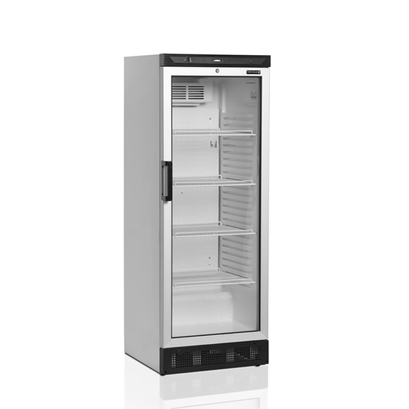 Läskkylen FS1280 från Tefcold har fläktassisterad kylning och rymmer 290L. Kylen är utrustad med en gångjärnsförsedd glasdörr med en högkvalitativ aluminiumram. Kylen har fyra hyllor vars position du kan anpassa till de drycker du säljer, samt ställbara fötter för höjdanpassning. Dess invändiga LED-lampa tänder upp kylskåpet för bästa möjliga presentation. Denna kyl passar på varje typ av restaurang, café, kiosk eller dylikt!