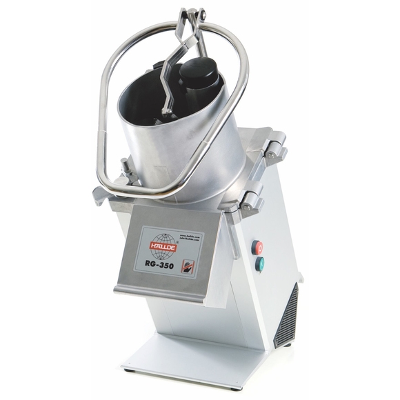 Hällde RG-350 är en mycket effektiv 1-fas grönsaksskärare som passar medelstora till stora kök till exempel bagerier och restauranger. Maskinen har kapacitet för att bereda upp till 15 kg per minut eller 1500 portioner per dag och har en cylinderformad matare som tar upp till 5,7 liter. Perfekt för att skiva, tärna, räffla och strimla råvaror som frukt, grönsaker, torrt bröd, ost och nötter.