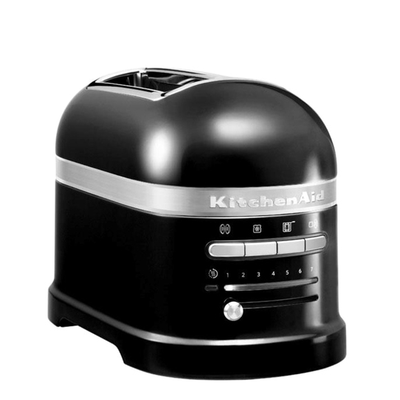 Den perfekta brödrosten för dig som vill lyxa till frukosten. Denna svarta brödrost kommer bli din nya bästa vän i köket, med en rad olika funktioner för att göra din upplevelse så god som möjligt. KitchenAids brödrost Artisan är utrustad med två skivor. Utöver detta finns det en bagelfunktion som rostar brödet på insidan och värmer utsidan, samt en tiningsfunktion som försiktigt ger dina frysta bröd perfekt yta. Du kan själv välja på sju olika inställningar beroende på hur du vill ha ditt bröd rostat och tack vare den automatiska sensorn höjs och sänks maten varsamt.