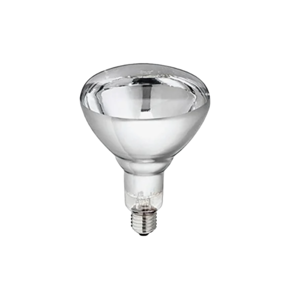 Glödlampa för infravärme i vitt sken, tillverkad i härdat och stänksäkert glas från Philips. Passar alla Stayhot värmelampor – både takmonterade och väggmonterade.