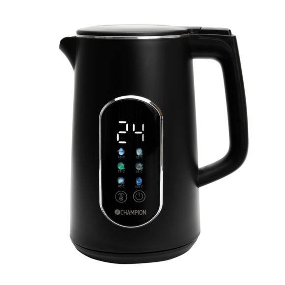 En modern vattenkokare från Champion i stilren mattsvart design, framtagen för professionellt bruk i restaurang, hotell och café. Den digitala displayen gör det enkelt att välja och hålla önskad temperatur, och den dubbla väggkonstruktionen håller utsidan sval. Utrustad med varmhållningsfunktion, torrkokningsskydd och automatisk avstängning för maximal säkerhet.